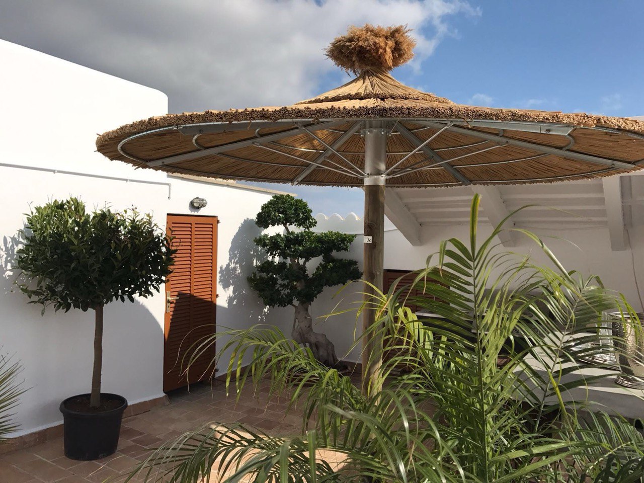 Genau hier setzen wir an. Unsere Strohschirme verbinden authentische, natürliche Optik mit einer außergewöhnlich robusten Konstruktion. Sie sind sturmfest, langlebig und für den dauerhaften Einsatz in Gastronomie, Hotellerie und privaten Außenbereichen konzipiert.